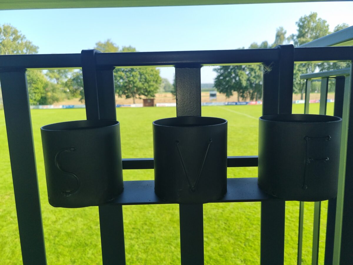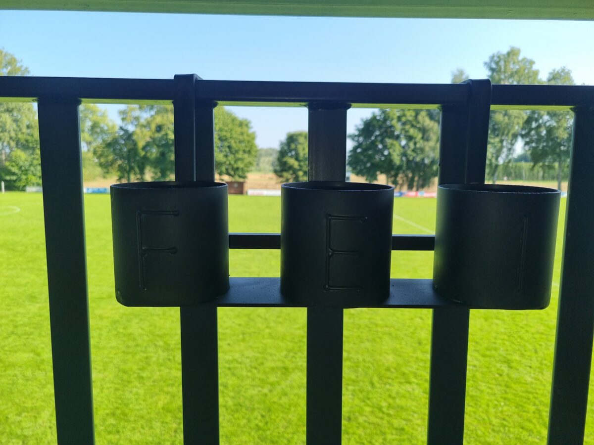 Doch damit nicht genug: Zur sicheren Aufbewahrung der Getränke bei unseren Heimspielen haben sich pfiffige SVF-Fans rund um Andrea und Stefan Kaindl etwas Besonderes einfallen lassen. Gemeinsam entwickelten sie eine clevere Lösung für Getränkehalter am Balkon, die nicht nur praktisch, sondern auch richtig stylisch sind.