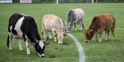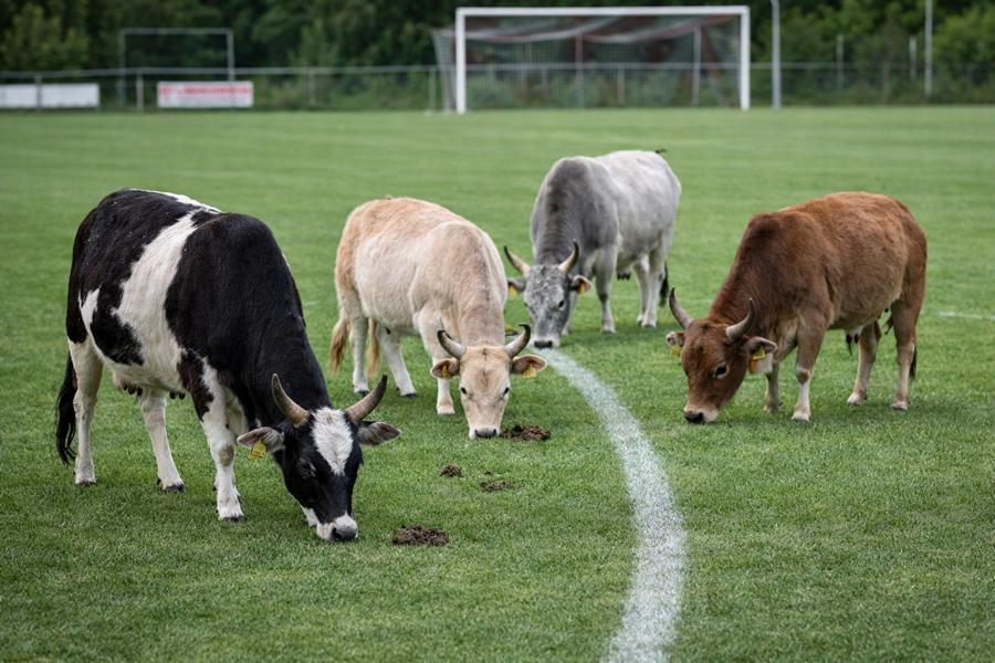 Die Herde verlässt jeden Tag um 6:30 Uhr das Spielfeld – genug Zeit, dass der Platz für das Training am Nachmittag vollständig bereit ist.